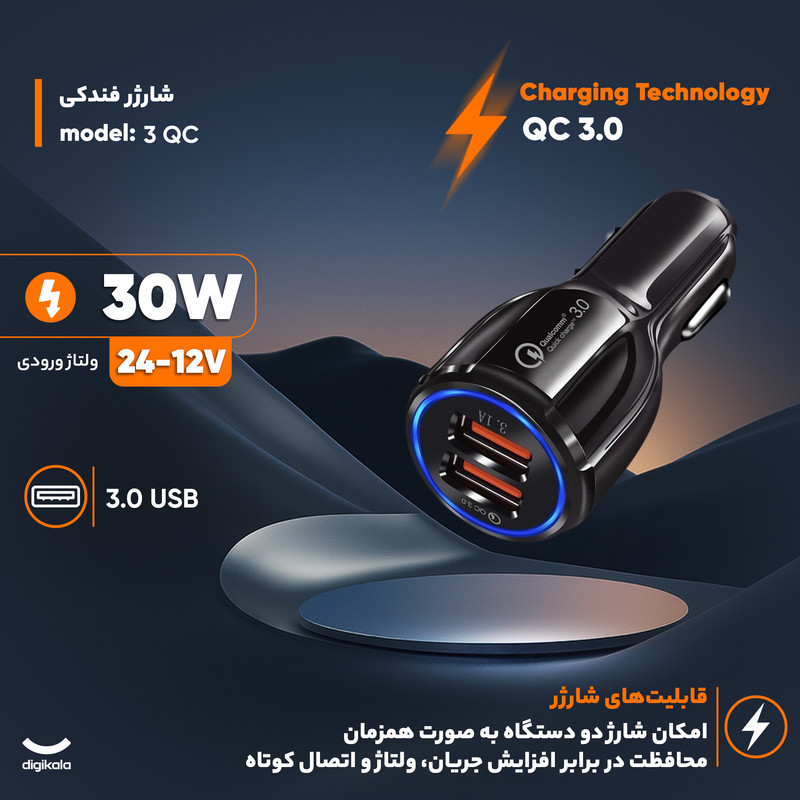 شارژر فندکی 35 وات مدل QC 3