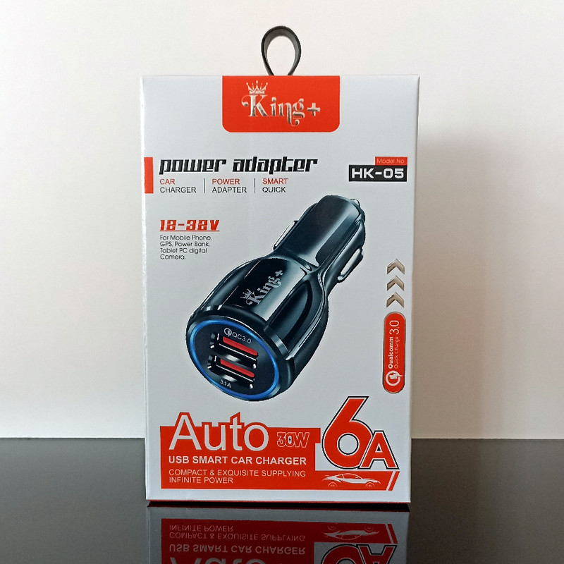 شارژر فندکی کینگ پلاس ( +King ) با کیفیت و استفاده از موادر اولیه مرغوب تولید گردیده است . دارای قابلیت شارژ سریع QC 3.0 میباشد . شارژر مذکور دارای دو پورت خروجی usb جهت اتصال و شارژ انواع گوشی ، تبلت و سایر گجت های هوشمند که دارای مشخصات شارژ سریع ( فست شارژ ) و ًQC 3.0 میباشند، مناسب و قابل استفاده میباشد . ولتاژ ورودی شارژر 12 الی 32 ولت متغیر بوده و دارای خروجی هوشمند و ایمن 5 ، 9 و 12 ولت با توان 30 وات میباشد که شدت جریان خروجی نیز مطابق ولتاژ خروجی از 1.6 الی 6 آمپر توسط شارژر انتخاب میگردد. شارژر فندکی کینگ پلاس مدل HK-05 علاوه بر طراحی و نور LED زیبا ، دارای سیستم حفاظت و ایمنی در برابر افزایش جریان ، ولتاژ و اتصال کوتاه میباشد .