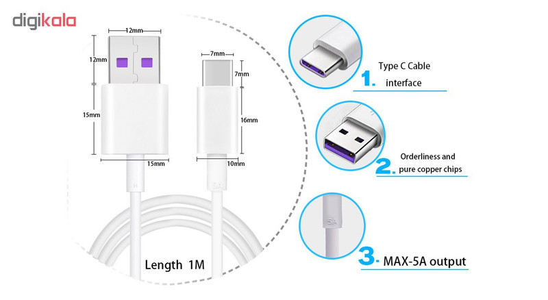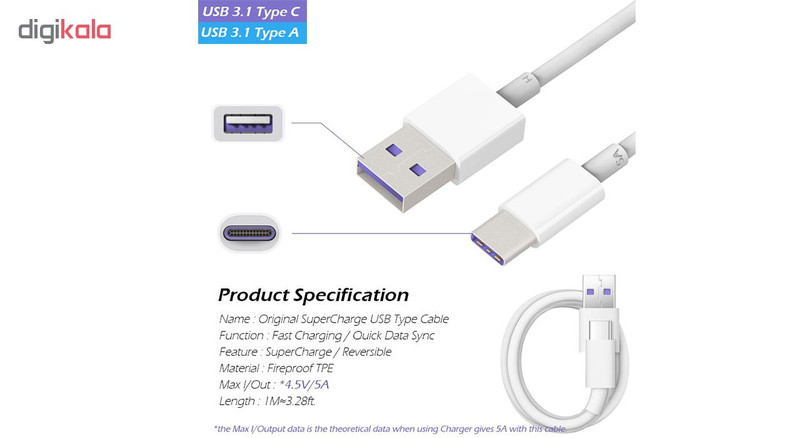 کابل Super Charge تایپ سی نسخه USB 3.1 برای شارژ تمام گوشی های دارای پورت Type-C قابل استفاده است. گوشی خود را به یک آداپتور شارژ سریع وصل کنید تا شارژ فوق العاده سریع را با این کابل در اختیار داشته باشید. کابل USB 3.1 نوع C ضمن اتصال ساده به پورت و از هر دو سمت، سرعت بسیار بالایی در انتقال داده دارد. با اتصال گوشی توسط این کابل به رایانه یا لپ تاپ می توانید هم گوشی را شارژ نمایید و همزمان اطلاعات را جا به جا نمایید.