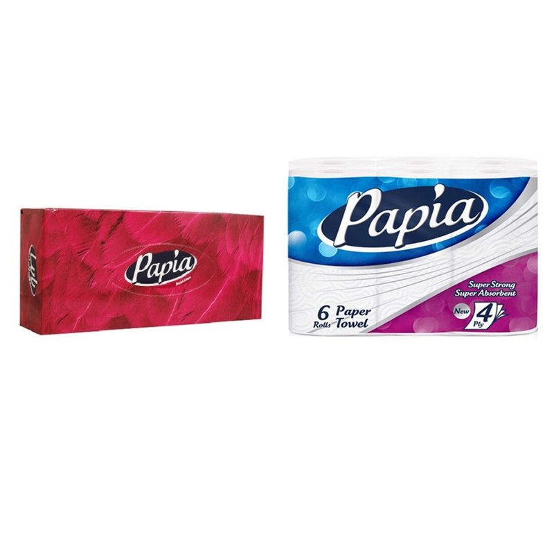 دستمال حوله ای و دستمال جعبه ای 200 برگ پاپیا کد 12 مجموعه 2 عددی